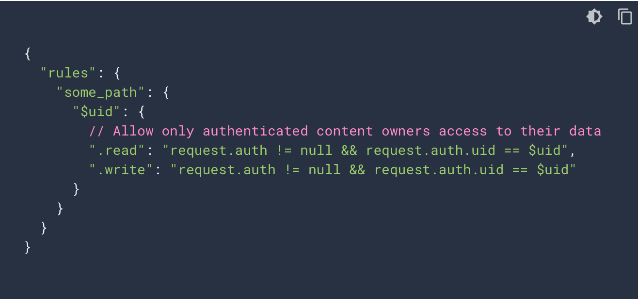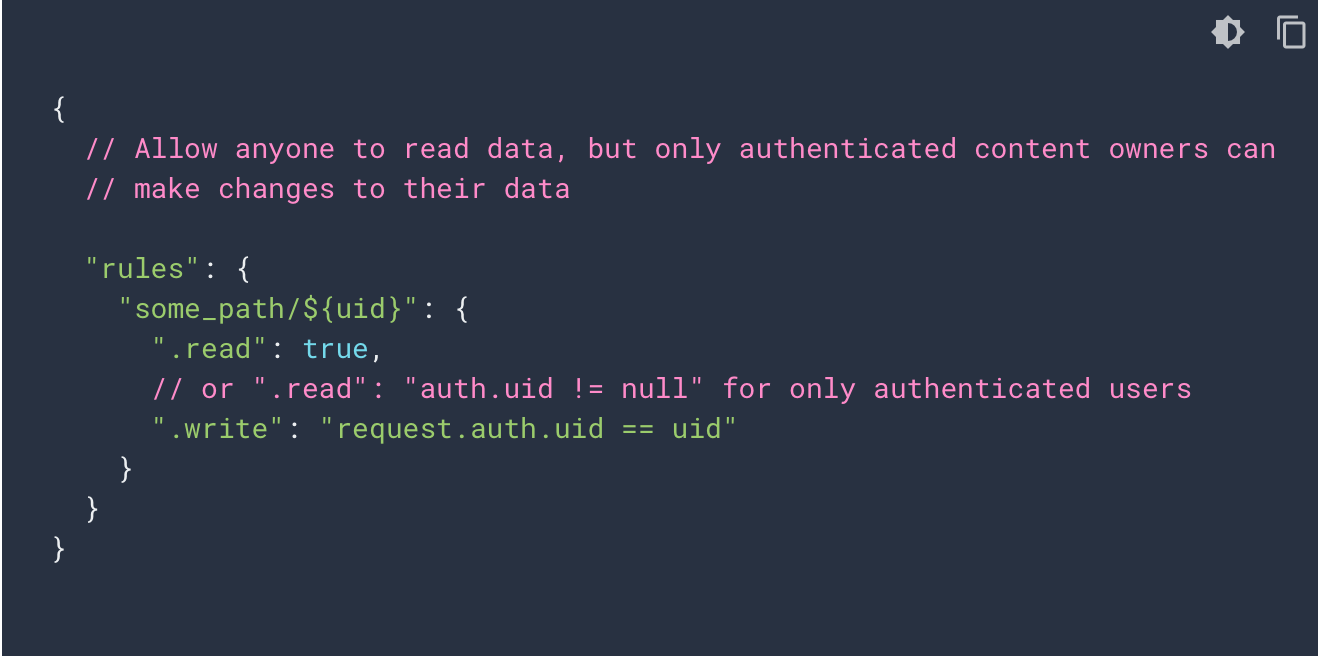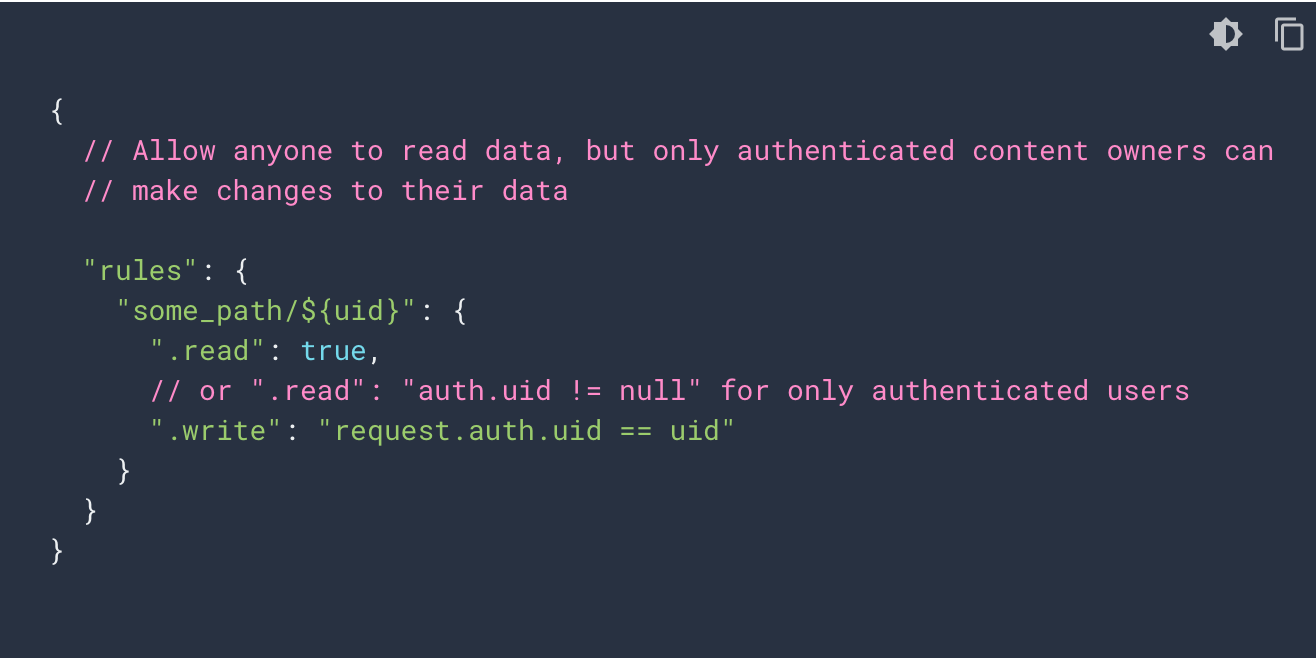 Firebase Documentationに記載されていたルールをいくつかまとめておきます。