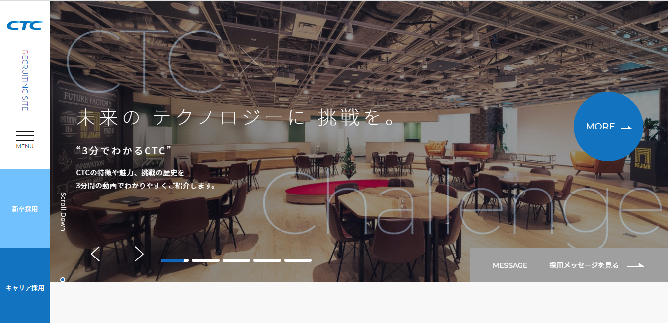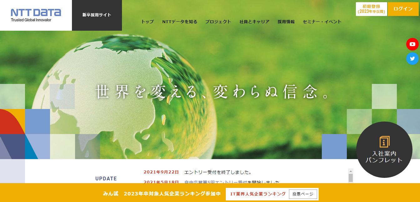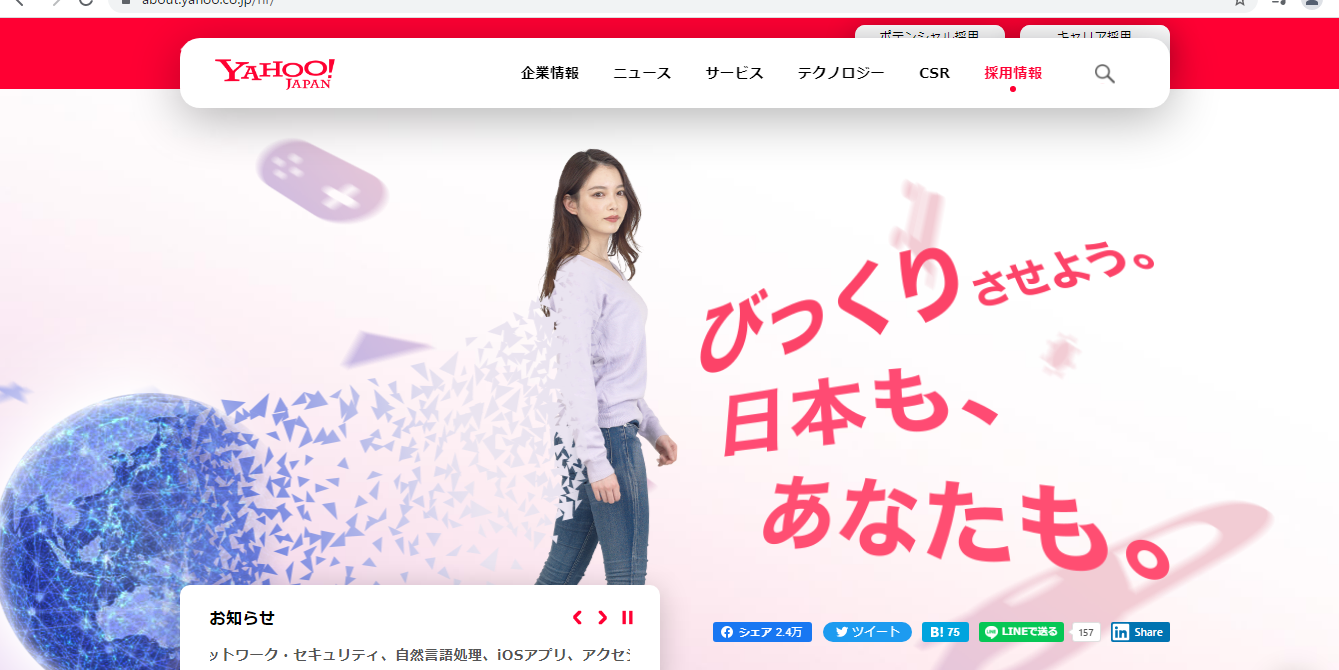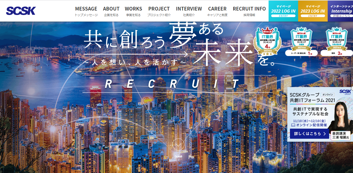 ハイマックスの広告を作成するにあたり、まずは、22卒の就活生に人気のIT企業の広告(会社の採用ホームページトップ)について調べてみた。