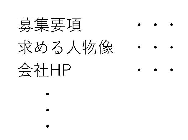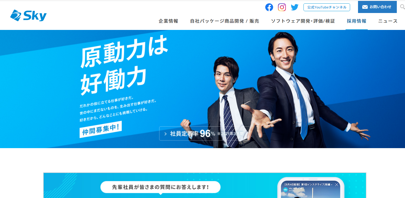 多くの会社がそれぞれのキャッチフレーズが採用ホームページのトップにあり、スクロールしていくと採用に関する情報(募集要項や事業内容等)を記載していた。