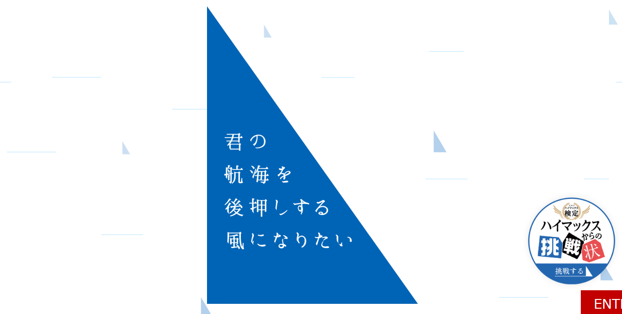 現在のハイマックスのホームページは、ページトップに”君の航海を後押しする風になりたい”というキーワードがあり、ページ最上部とスクロール後に会社に関する情報が記載されている。